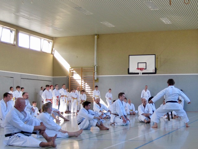 Dies war der letzte von vielen, teils spektakulären Lehrgängen in der Verantwortung von Manfred Sponberg, wie etwa die jährlichen Veranstaltungen mit dem Bundestrainer Efthimios Karamitsos oder dem mehrfachen Weltmeister Luca Valdesi aus Italien. Denn jetzt hat Sponberg, mit dem 6. DAN Grad hochrangigster Kampfsportler der Stadt und Träger der Goldenen Ehrennadel des Karate-Landesverbandes von Schleswig-Holstein, seinen Vereinsvorsitz an einen jüngeren Leistungsträger des Vereins abgegeben, an Roland Hoeg, Träger des 3. DAN Grades, der ebenfalls sehr gut in der Karateszene vernetzt ist.