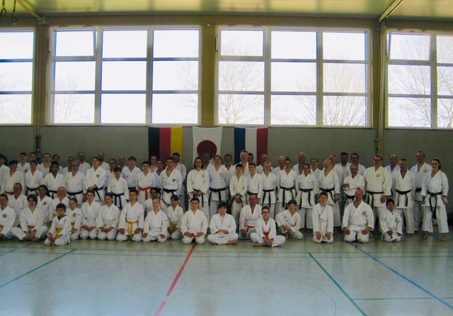 Abends fanden im Anschluss an den Lehrgang Farbgurt-Prüfungen statt, die 21 Karate-Sportlern von vier Prüfern abgenommen wurden. Die Kandidaten zeigten durchweg starke Leistungen auf gutem Karate-Niveau. Sie gingen schließlich mit dem Hochgefühl nach Hause, sich ihre beurkundete Höhergraduierung in einem außergewöhnlichen Rahmen verdient zu haben.
